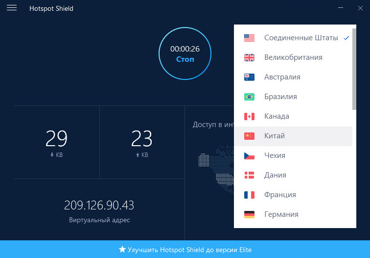 Для решения проблемы необходима замена IP-адреса и перенаправление трафика через собственные серверы. Одной из программ, решающей эти задачи, является русская версия Хот Спот Шилд.