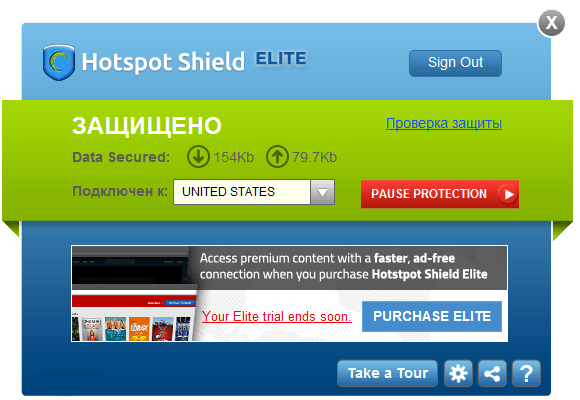 Недостаток бесплатности — многочисленная реклама, всплывающая на каждой открытой в интернете странице. Кроме этого, соглашение с Hotspot Shield получает согласие пользователей на сбор статистики, посредством ПО — файлы куки, сеансы связи и другие. Минимизировать неудобства можно, посетив официальный сайт Hotspot Shield VPN и купив расширенную — платную — версию ПО.